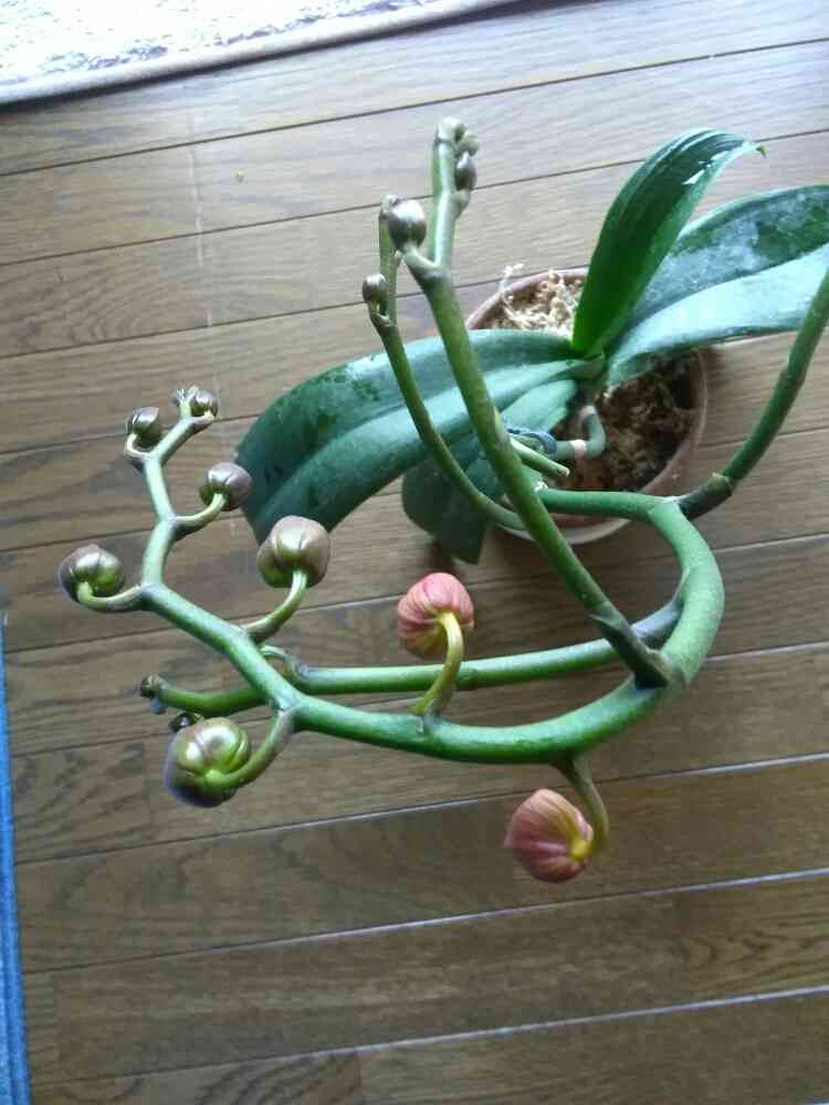 こんばんは🌱蕾、シケてきたんでしょうか?私はとりあえず、花茎の根元に1番近い気根に水を吸わせたりするのですが…