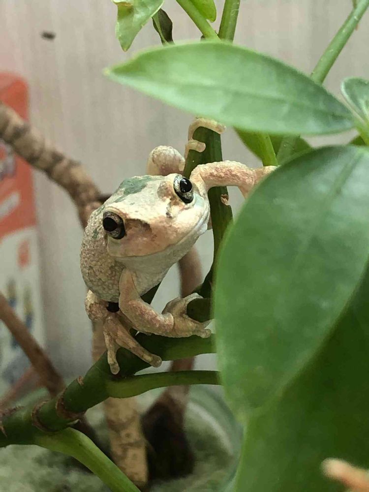 カエルさんを飼っているのね。家もシュレーゲルカエルだったかな?夏に2週間ほど飼っていました。毎日バッタを捕まえるのが大変だった😅