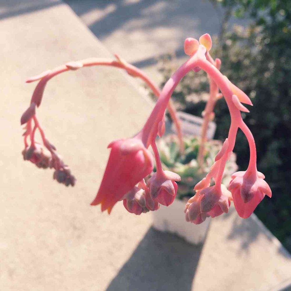エケベリアのお花は重みでどうしても項垂れてしまいますが、お花は可憐で可愛らしいですよ❤️
