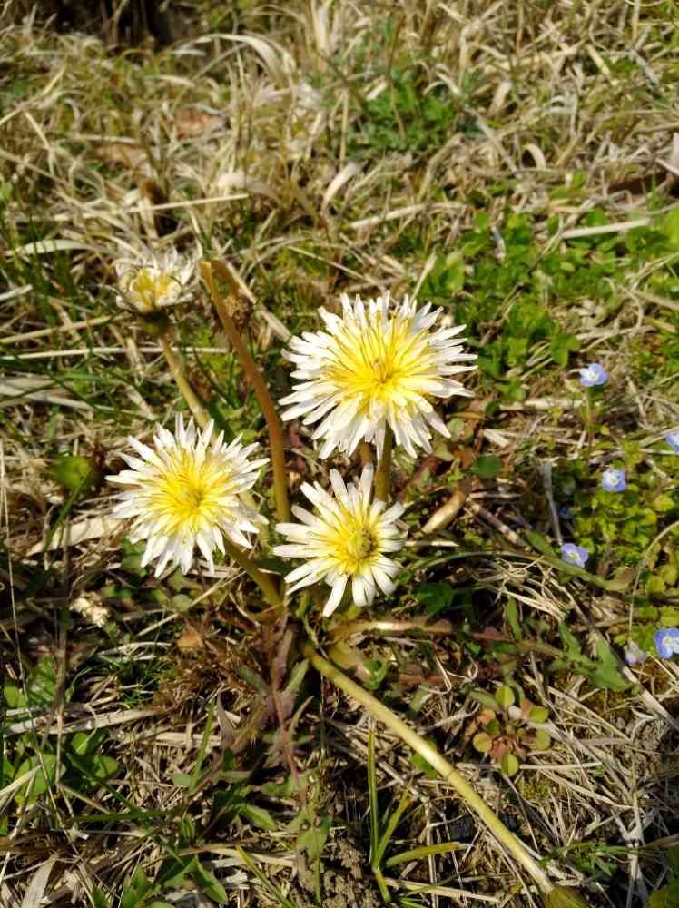 シロバナタンポポとオオイヌノフグリ🤗