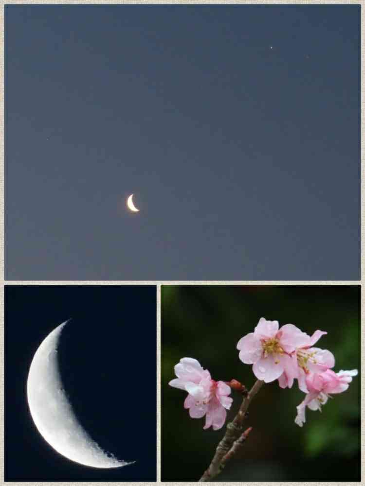 月は月齢24.5の薄い三日月で綺麗でした(下左)。