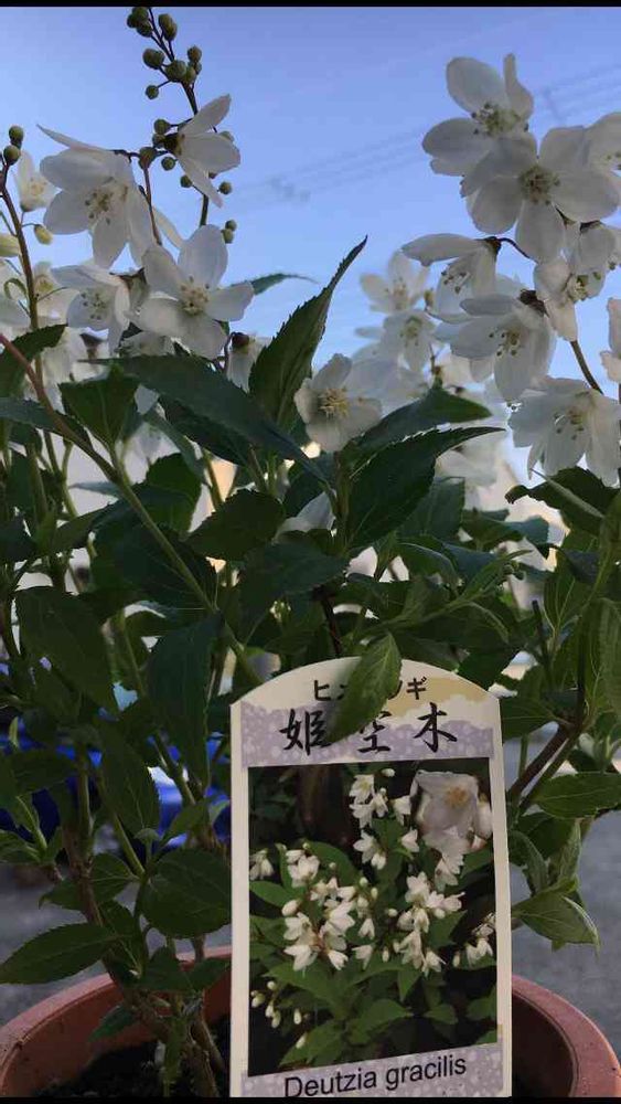 青空に姫ウツギの真っ白いお花が爽やかです^_^♡♡♡
