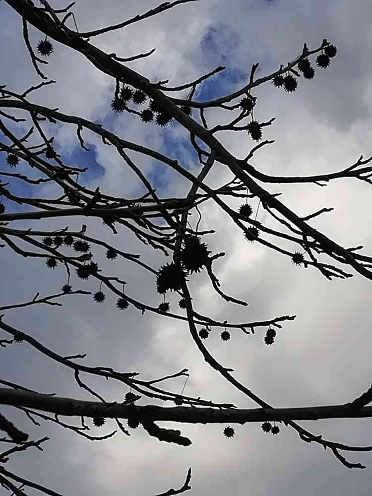 真っ黒クロスケみたいな面白い実が沢山付いていてなんじゃこりゃ⁉️🙄 と思ったらモミジバフウ別名アメリカフウでした💖