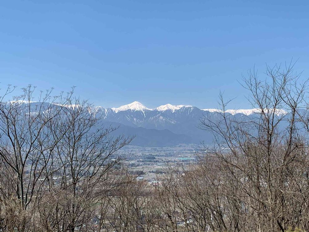 春霞の向こうに北アルプスが一望できる広大な公園ですよ😃