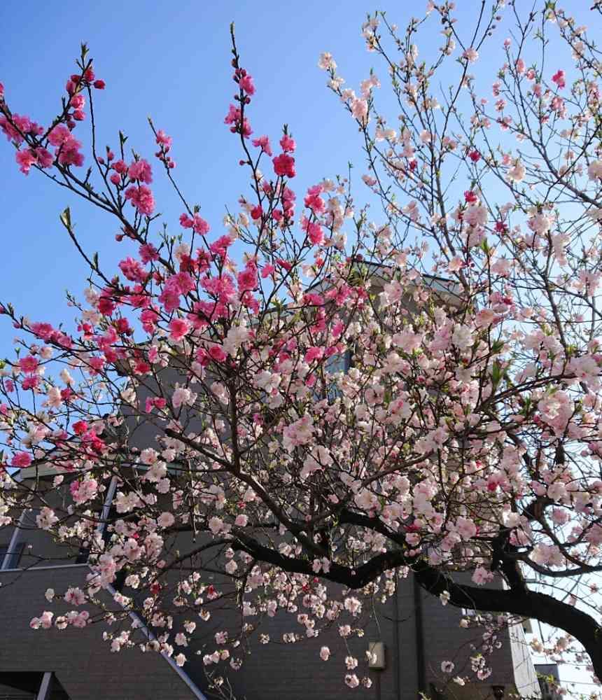 お散歩道の花桃 源平桃が満開です(*^O^*)🎶