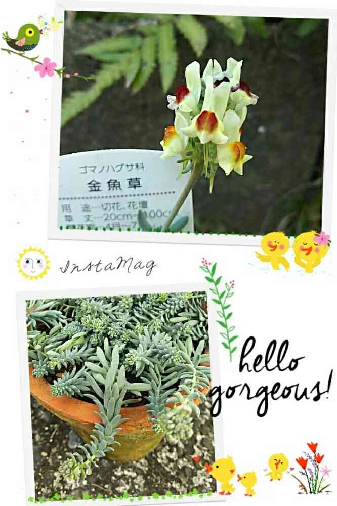 葉っぱが多肉質のお花『金魚草』となってますが、調べてみると宿根リナリアの姫金魚草みたいです