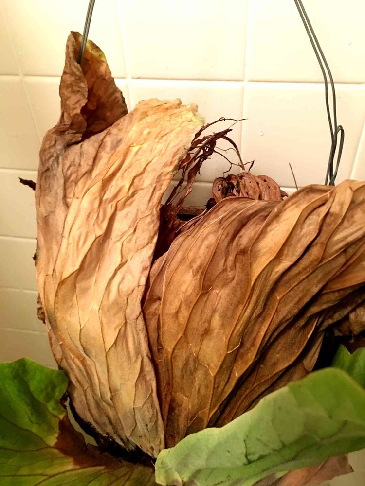 水やりしようとしたら枯れた貯水葉に目を奪われました。
