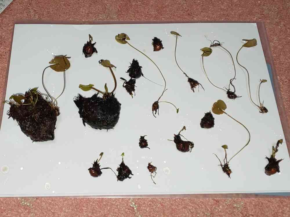 一年水につけておいたら増えた熱帯睡蓮のムカゴ。