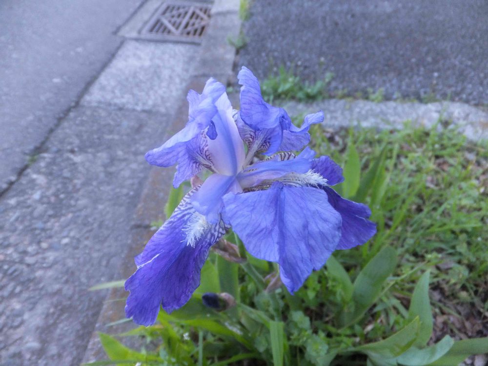 朝の通勤途中。 大きな花芽があり、何だろうと思っていたら、カンザキアヤメでした。 パチリ