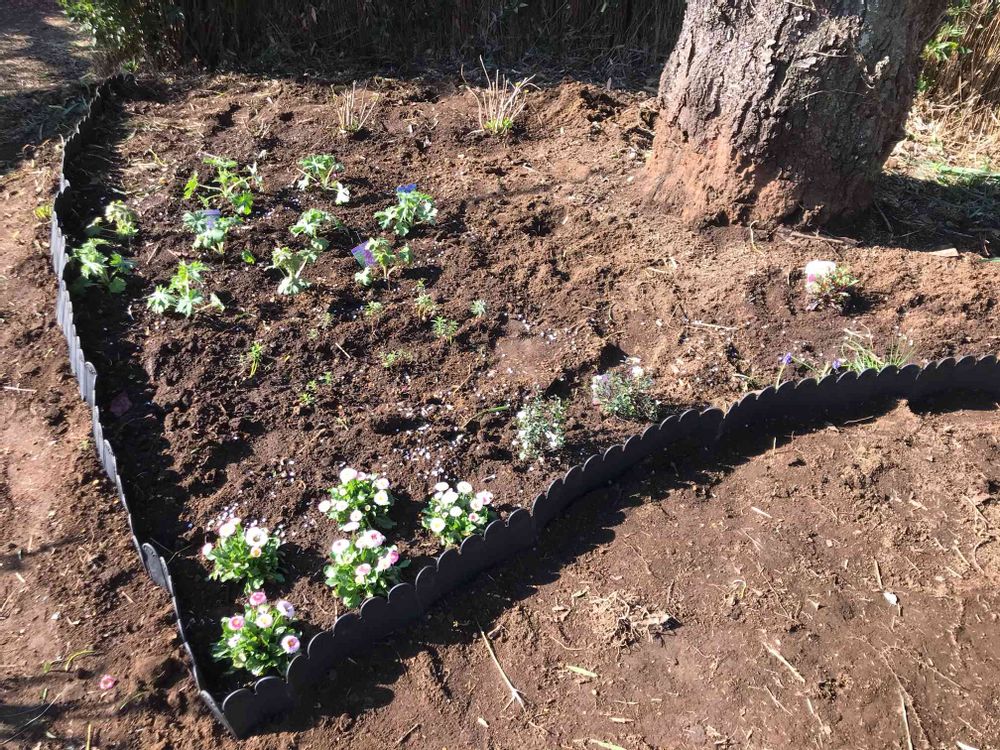 桜の木の下に何十年も落ち葉や草取りしたもの、枯れた鉢花など積んであった山を、ついに片付けて花壇にしました‼️