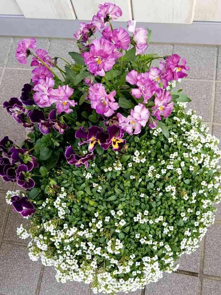 『ビオーラ』の鉢上からみたらアリッサムのカーペットみたいに💕