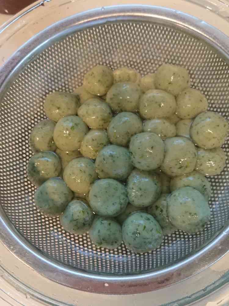 白玉粉1袋に対して、ヨモギ下茹でしない前の生の状態で、18サンチザルに、軽く一杯分(かなりアバウトです..)