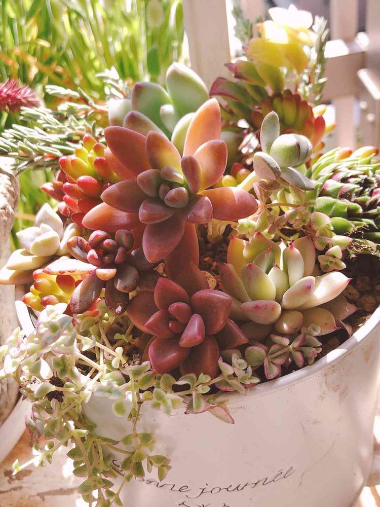ブロンズとか秋麗ってお手頃なのに寄せ植え映え最高。旦那の作った寄せ植え。
