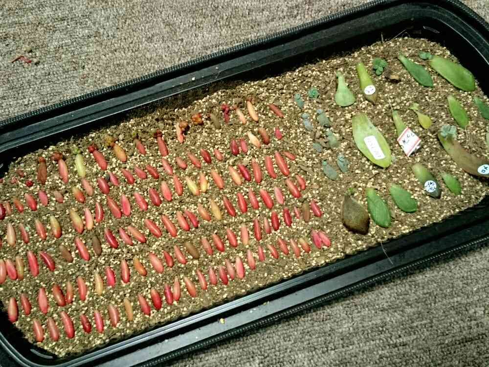 ある程度大きさあるからたくさんのせれるもんねー最初はそのトレイで夜部屋の中で植え替えしたりしてて 植え替えした土の上にポロポロとれた葉っぱ置きだしたのがはじまりでした笑笑