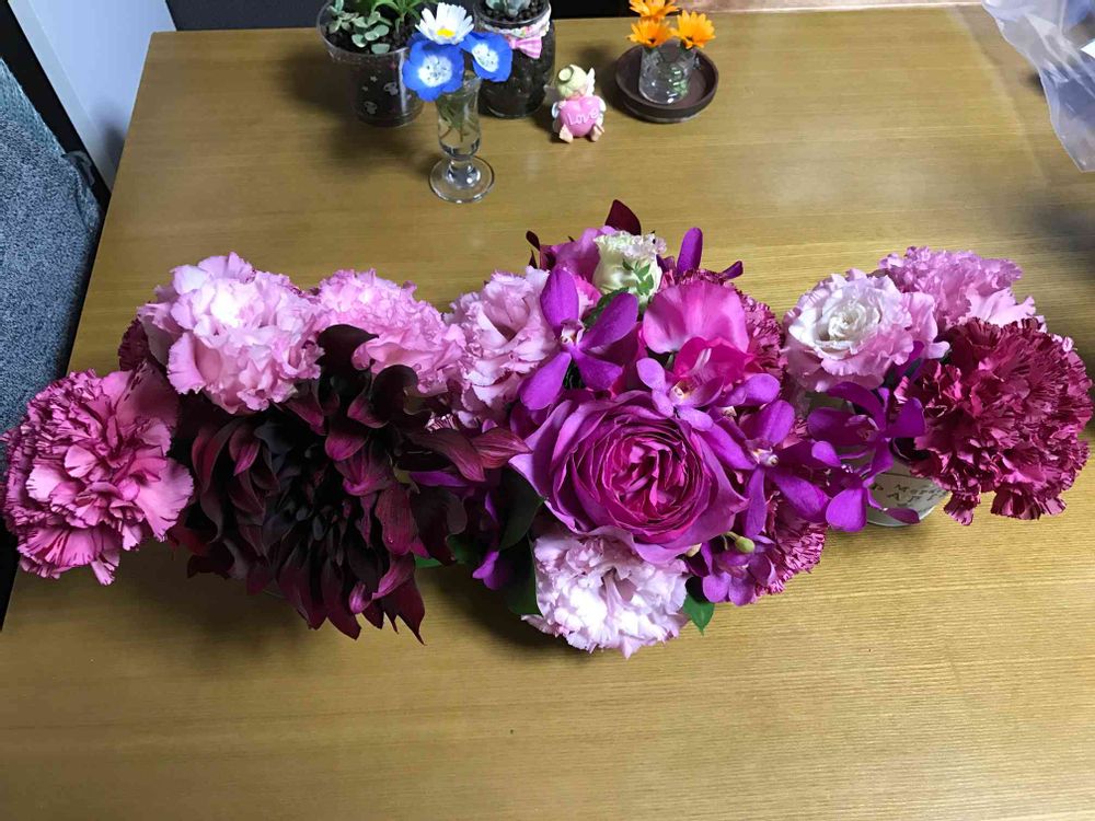 旦那と私で二人分、たくさんのお花をいただきました(ᵔᴥᵔ)🎶