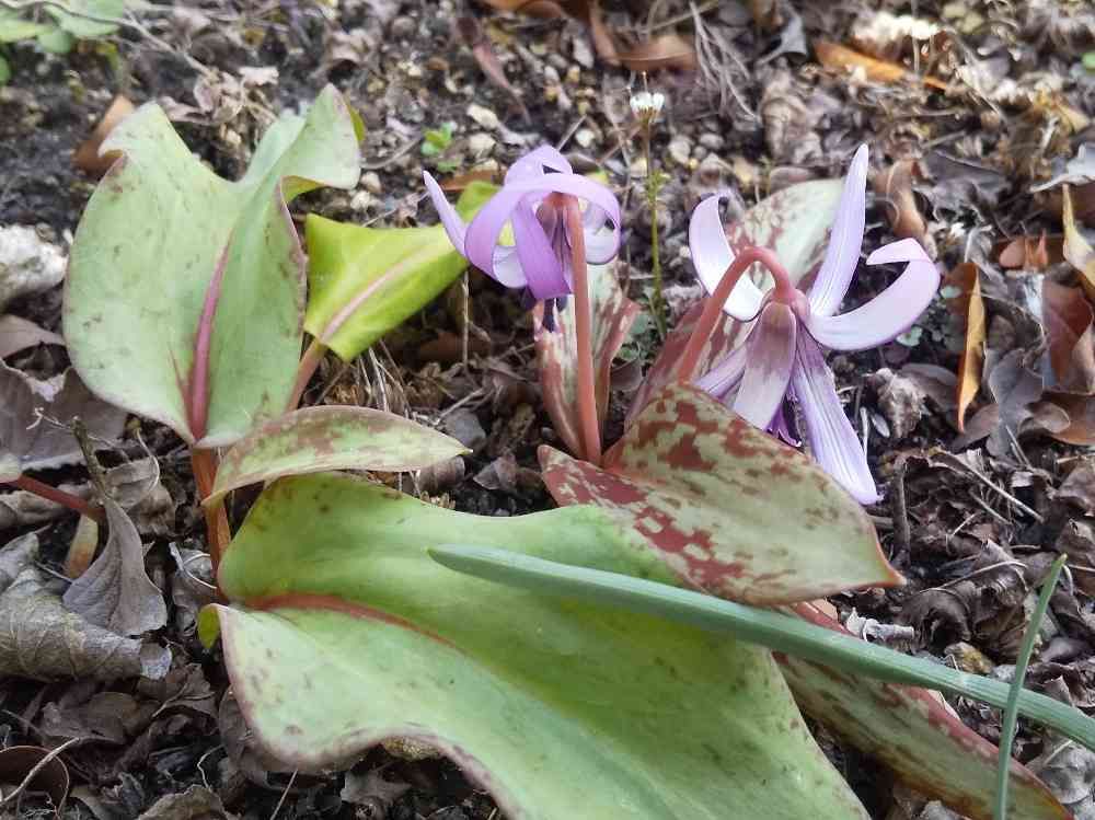 我が家の裏庭に、カタクリの花が咲き始めました。
