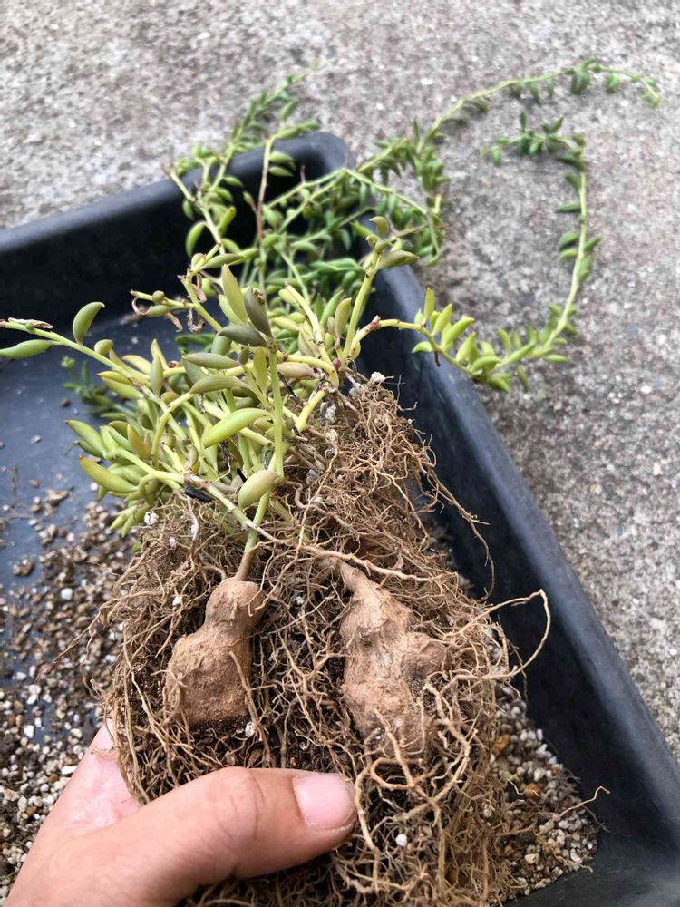 グリーンネックレスのように垂れ下がる系の多肉植物で塊根が出来るなんて…((((;゚Д゚)))))))