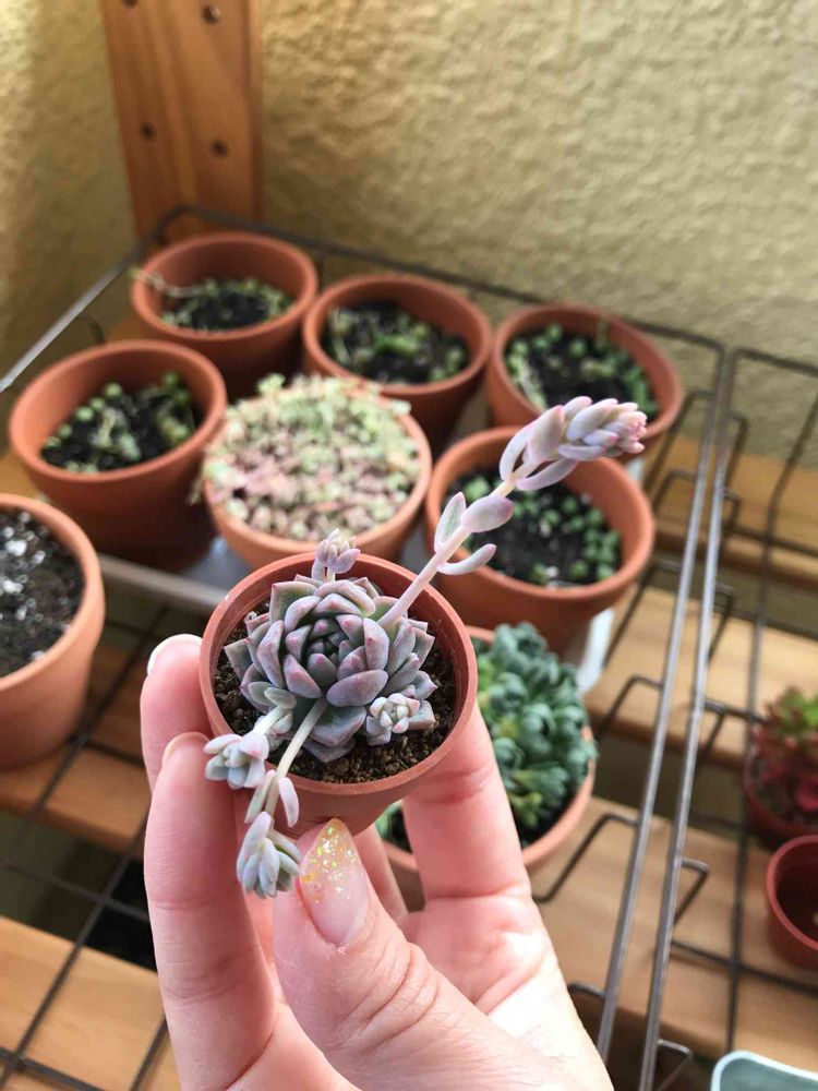 これ1号鉢なのですが、葉がすごく小さいんですが、ぽろっと落ちてる奴から根が出てびっくりしました♡この小ささで葉挿しできるなんて、多肉ちゃんすごいです(^^)