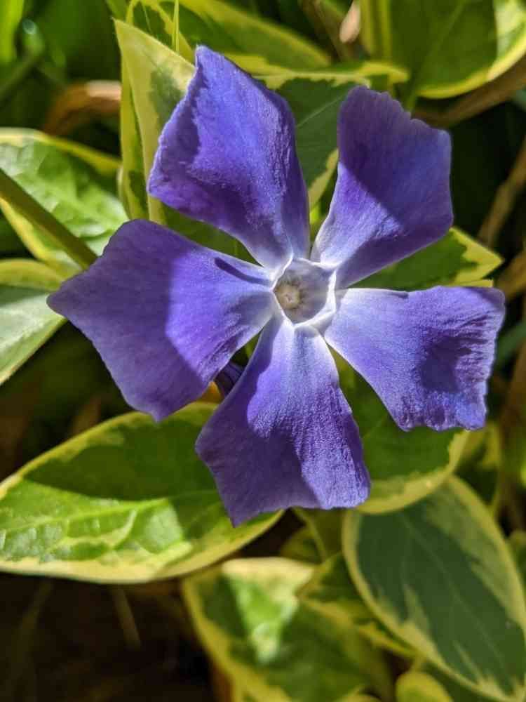 庭の隅で🌸咲くツルニチニチソウの🌸花