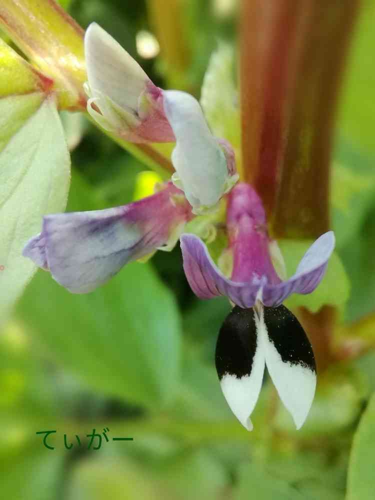 そら豆の花、私がみたのは、白くて、濃い紫の丸がついていました。