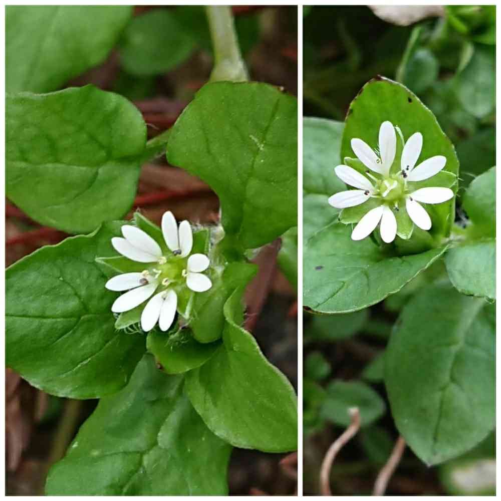 ミドリハコベは茎まで緑色で雄しべの数が8個以上、コハコベは茎が紫がかっていて蕊が少なめです😙