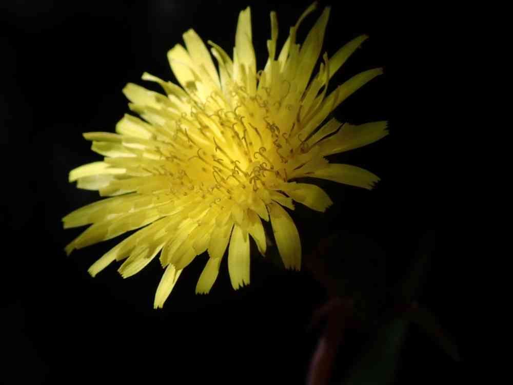 庭の片隅に咲くノゲシに木漏れ日のスポットライトが当たってました。