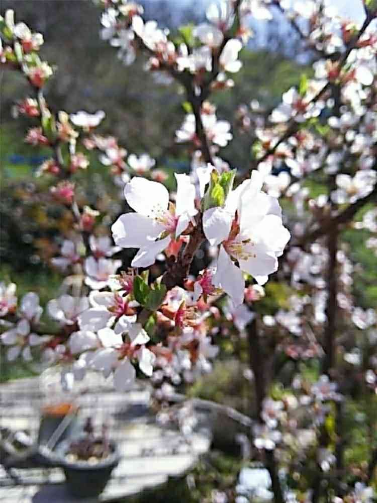 庭の鉢植えのユスラウメも開花してます