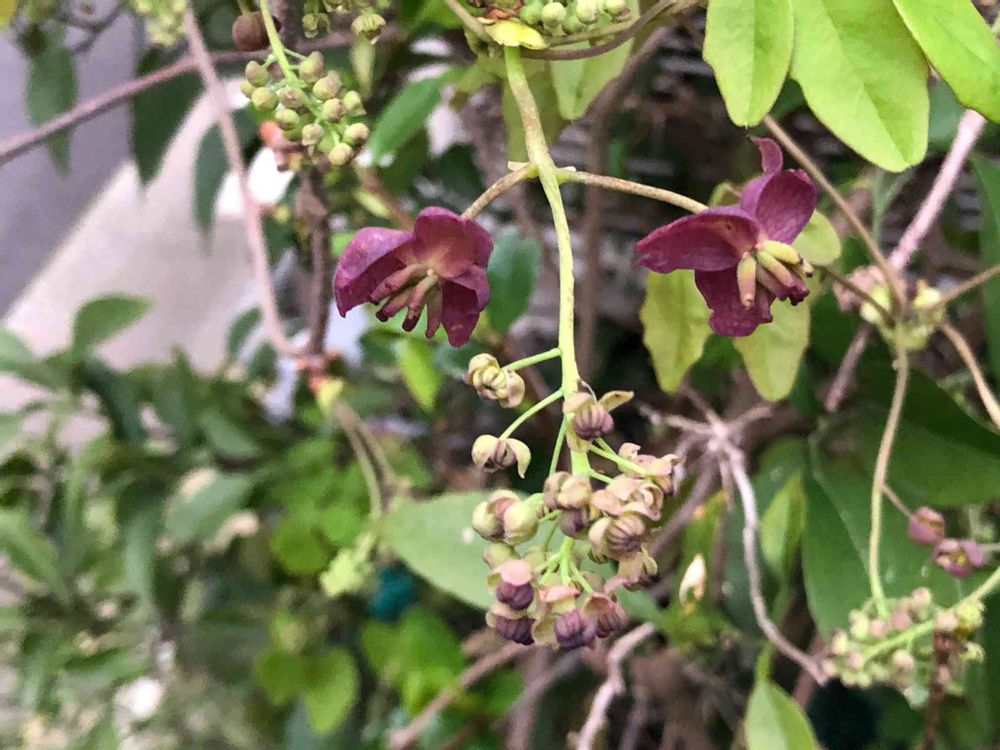 おはようございます🌅町中にも有りました‼️ アケビの花🌸です❗️