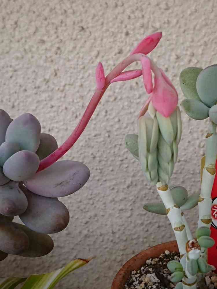 こんばんは🌃✨綺麗なピンク色の花茎で、ビックリです😆❤️以前も咲きましたが、お花はわりと地味めな感じだった気がします😅🌱