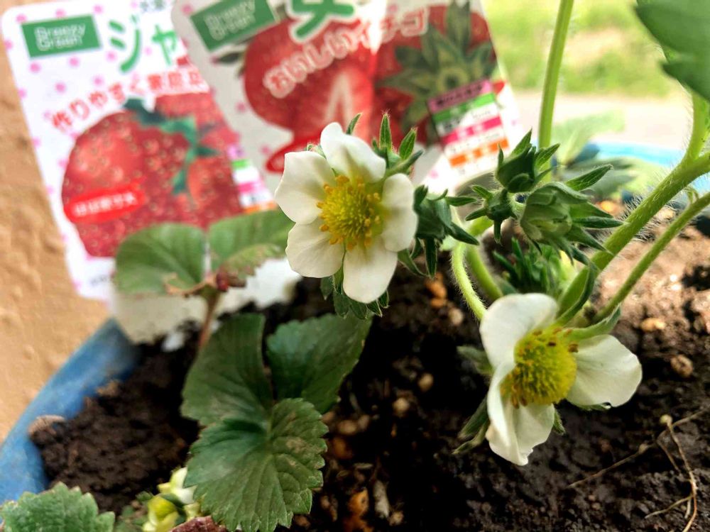 幼farm 苺の花が4つ咲いた🍓昨日居の暖かさに感謝