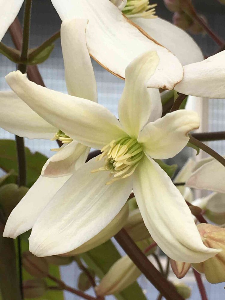純白で強い芳香があります。クレマチスの中で最も早咲き。芳香抜群です。