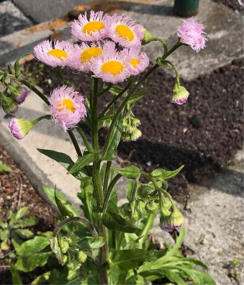 下の方に垂れ下がってる蕾が、花を咲かせると上のように真っ直ぐにシャキットするんですね(^^) こんな花が道端に咲いてるなんて知らなかったです(((^_^;) 是非ハルジオンに出会ってみたいです(^^♪