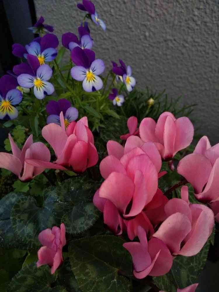 シクラメンとビオラさん仲良く咲いてます…(*˘︶˘*).。.:*♡🥀🧡💜☘️💮💝🎀🌸💞💚♥️🥀🤗ねぇ…