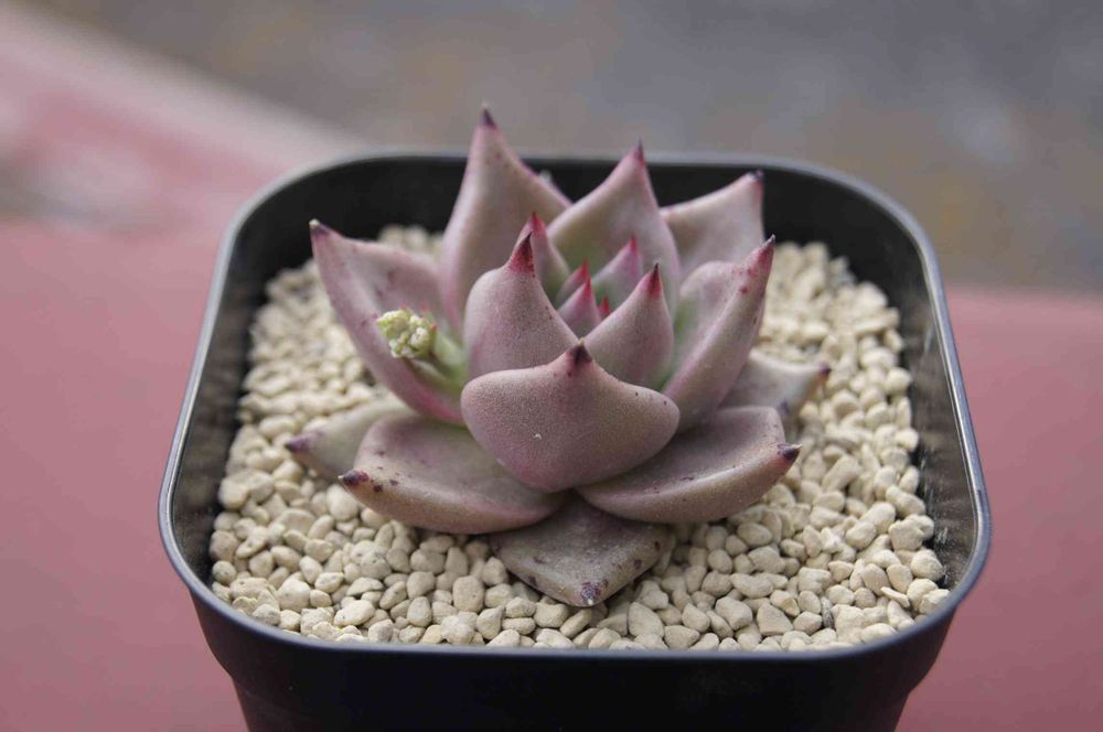 鉢が狭くなってきたので植え替えました。化粧に日向を使っています。排水性がいいので、土と葉が接触しがちな多肉には蒸れ防止の役割も果たせるでしょうね。軽石に近い特徴なのですが、日向は水に浮かないので、こういった化粧としても使いやすいです。あと硬いので劣化しにくいのもいいですね。さて本種は、タウラス、レッドエボニーの名前でも流通しています。レッドエボニー、意味合い的には「赤い漆黒」「赤の黒檀」といったところでしょうか。黒とは何なのか。考えさせられる名前ですね。それにしてもこの名前「エボニーの珍しいヤツだ」と思って買う人はいるでしょうね。個人的には、小さい柴犬を豆シバと称して販売する行為に通ずるものがあると感じます。