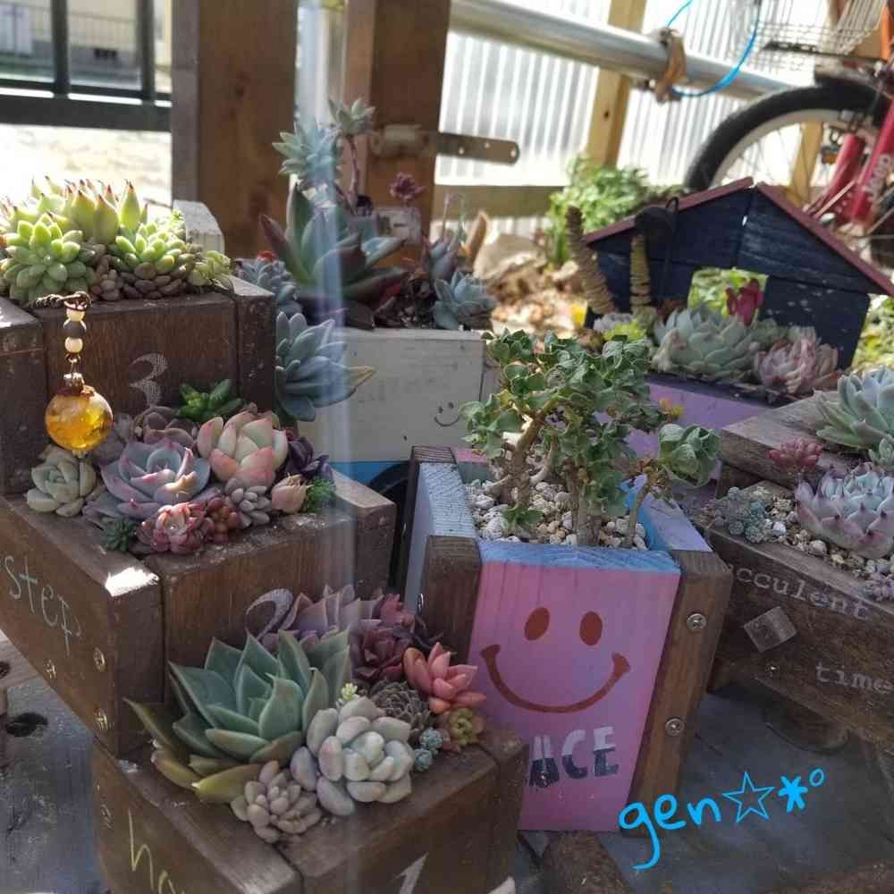 さん、そうですか、旦那さまの手作りなんですね、愛情いっぱいのボックスに多肉さんがいっぱい詰まって、まさにげんげんさん宅の愛溢れるファミリー、すてき〜ねこミーも多肉さんが増やして、✌️ファミリー作ります。