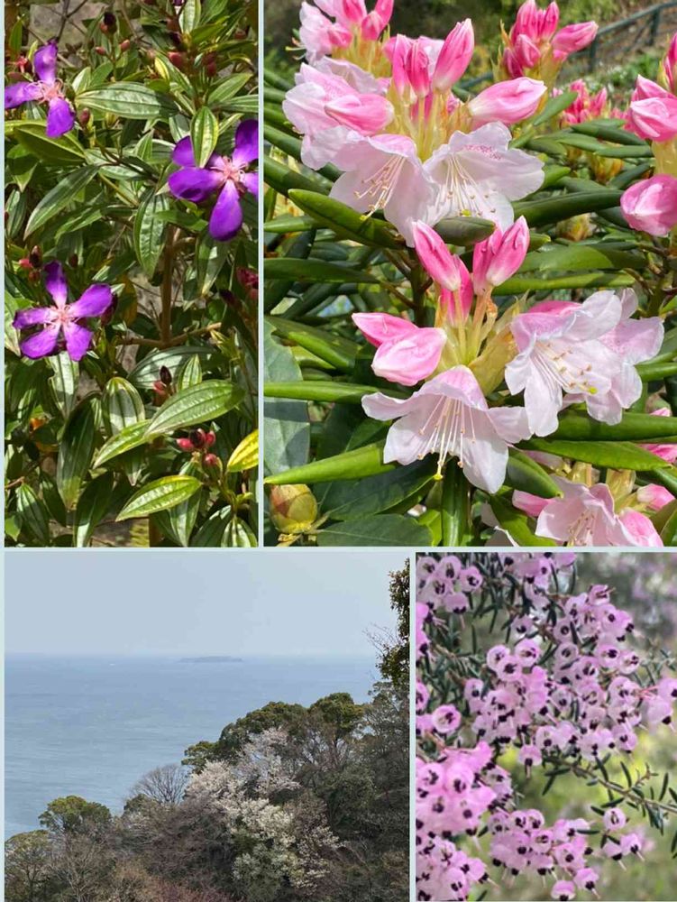 初島が見えて熱海桜が咲き 沢山の花咲き乱れるハーブ園を散策しました💕✨🎶