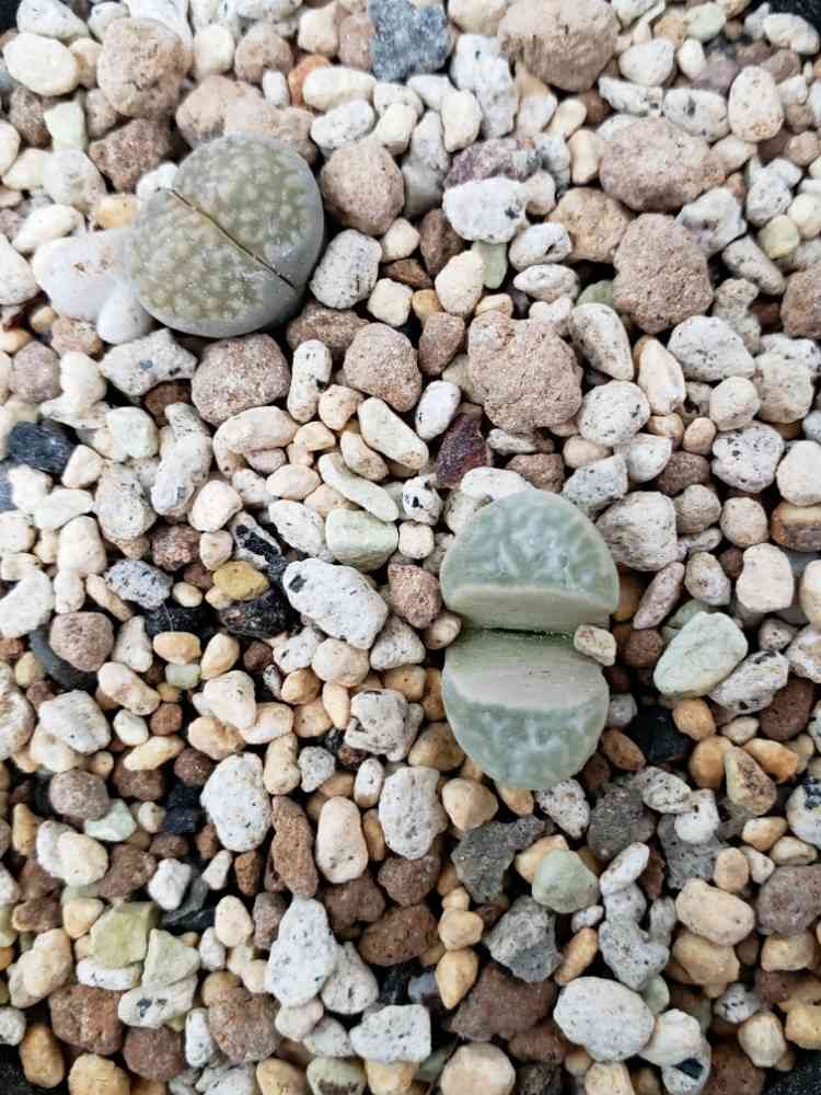二重脱皮を始めたリトープス。品種名お分かりの方、いらっしゃいますでしょうか?「これかも」「これかなぁ」で結構です。よろしくお願いします