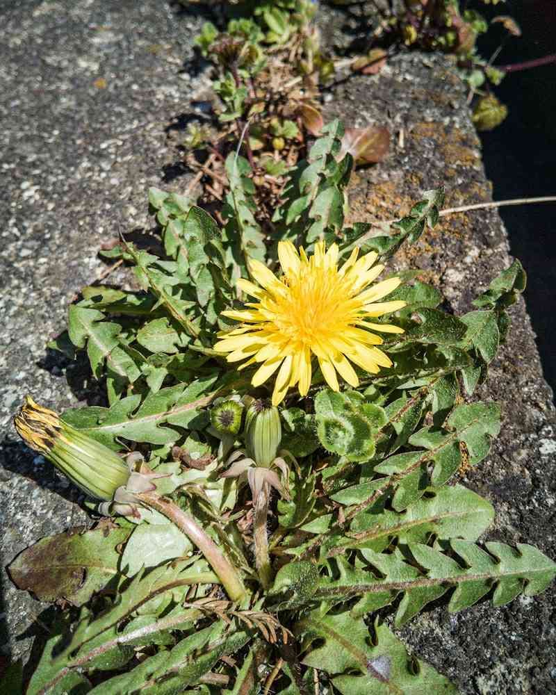 隙間花壇の西洋タンポポ🌞ピッタリとハマってるの意外と気持ち良いのかな?凄いね😆‼️