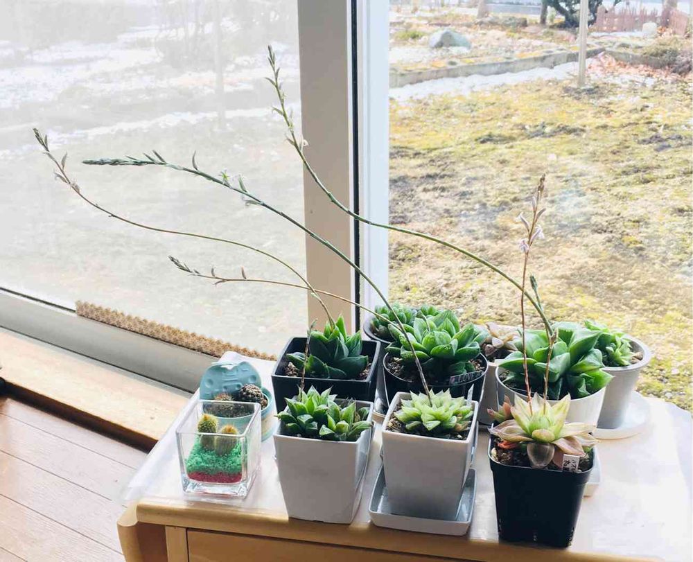 ハオルチアがどんどん蕾を付けてます( ⁎ᵕᴗᵕ⁎ )♡まだ他に2鉢伸びるハオルチアさんがいます❤
