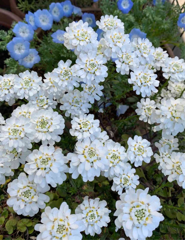 白いイベリスさんと後ろのブルーのネモフィラさん♡**♡**♡