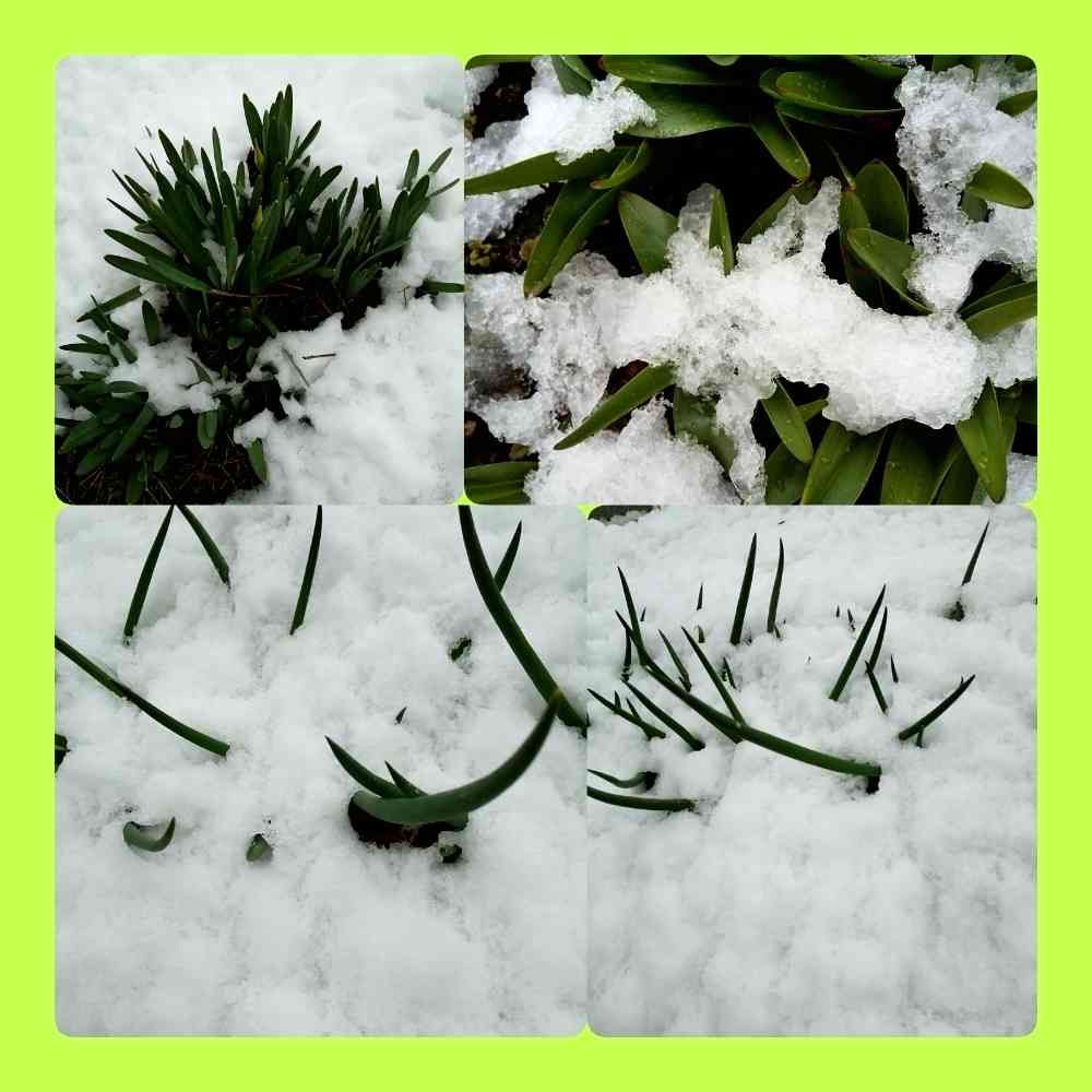水仙の蕾も雪で被われ真っ白⛄️大分溶けてます☺️