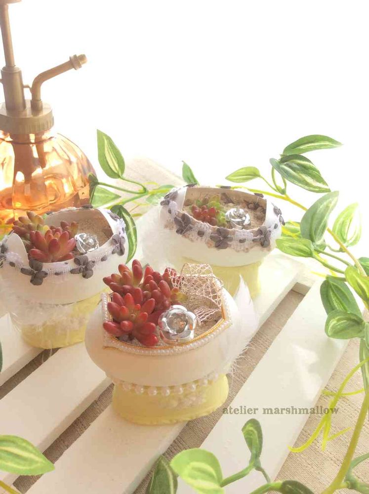 多肉植物を入れたイースターエッグ♡キッチンで育てながら見るたびに笑顔になっちゃう!