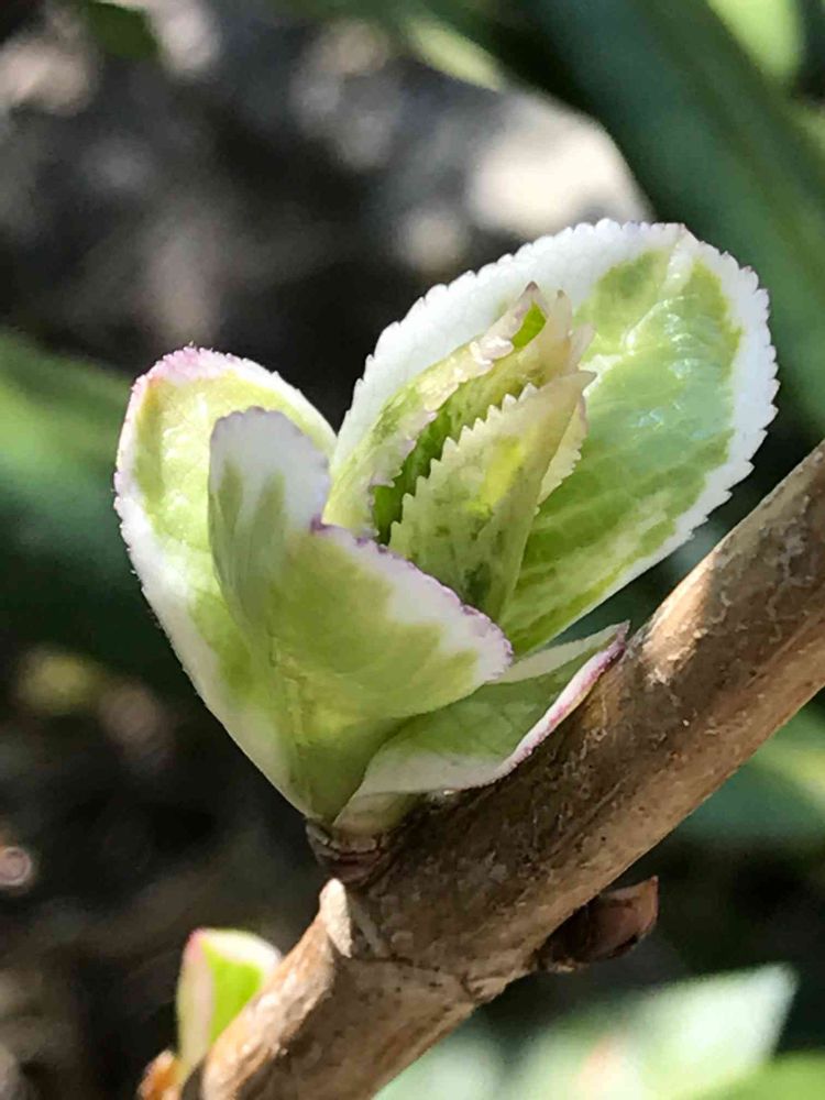 紫陽花の新芽が色付いて可愛いです💕