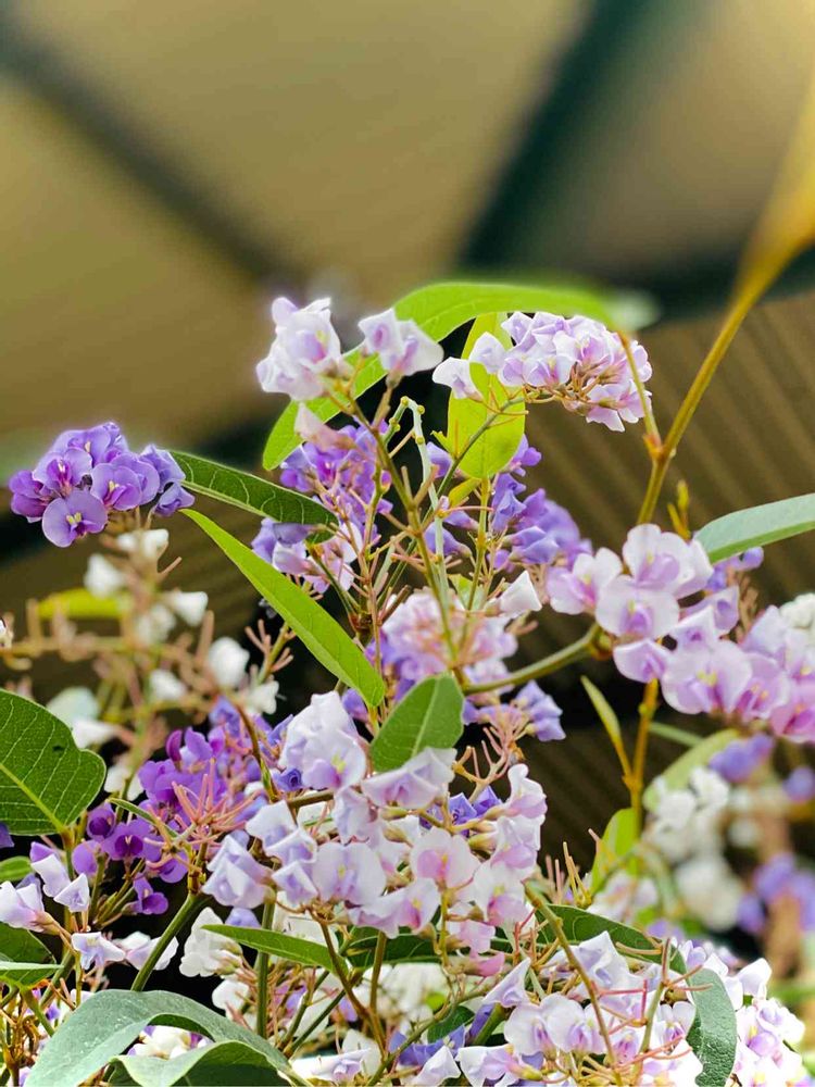 ハーデンベルギアは、コチョウランを小さくしたような愛嬌のある花が、連なるように穂になって多数咲きます。