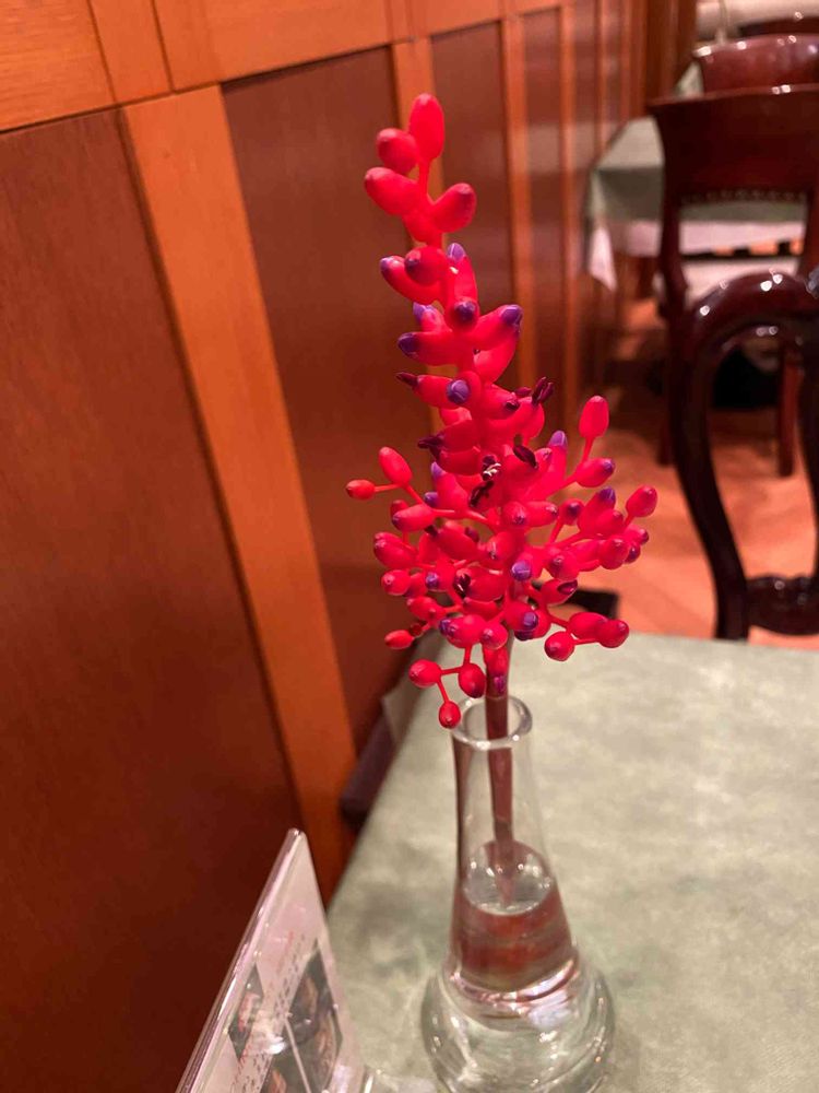 レストランのテーブルの一輪挿しです。エクメアと教えてくれました。