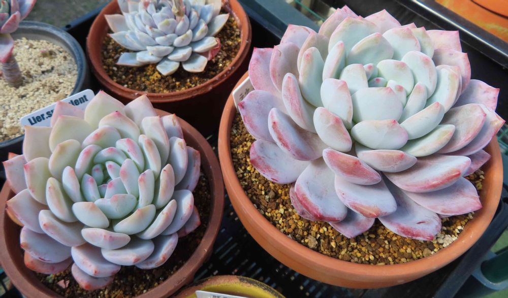 白い粉系のエケベリアは形が崩れにくいのが多いですね。よく似た紅モンローやオレンジモンローも大きく育ってますが、やっぱり形が整ったままです🤗