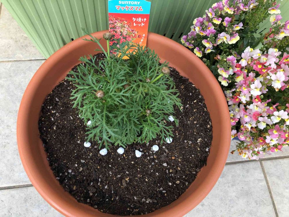 大きめの鉢がいいって事で植えてみたけどどうなるかな…。沢山咲くといいな🌸