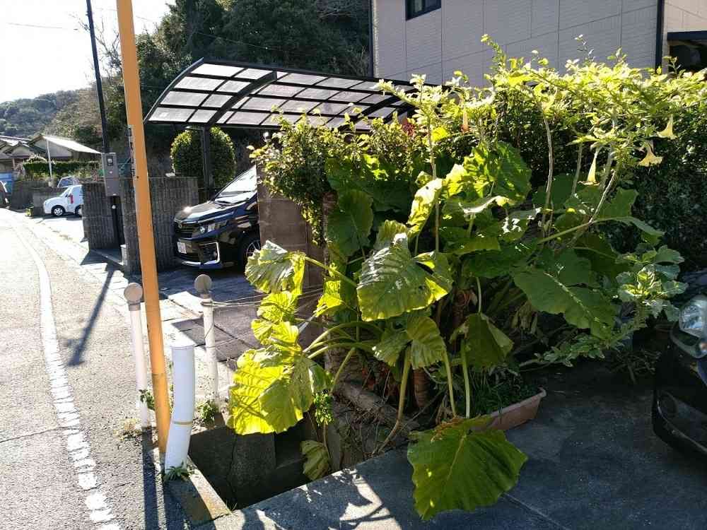 二月半ばの様子です。エンゼルトランペットはまだ花を付けていました。