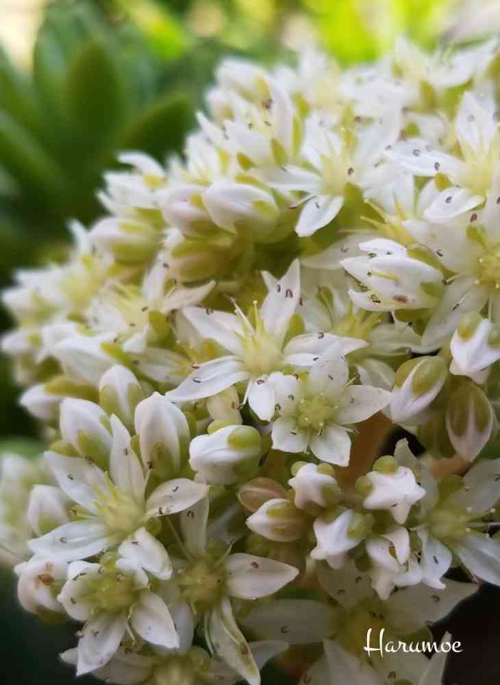 多肉ちゃんで白いお花は 珍しい感じ 一塊になって豪華ね〜✨☆