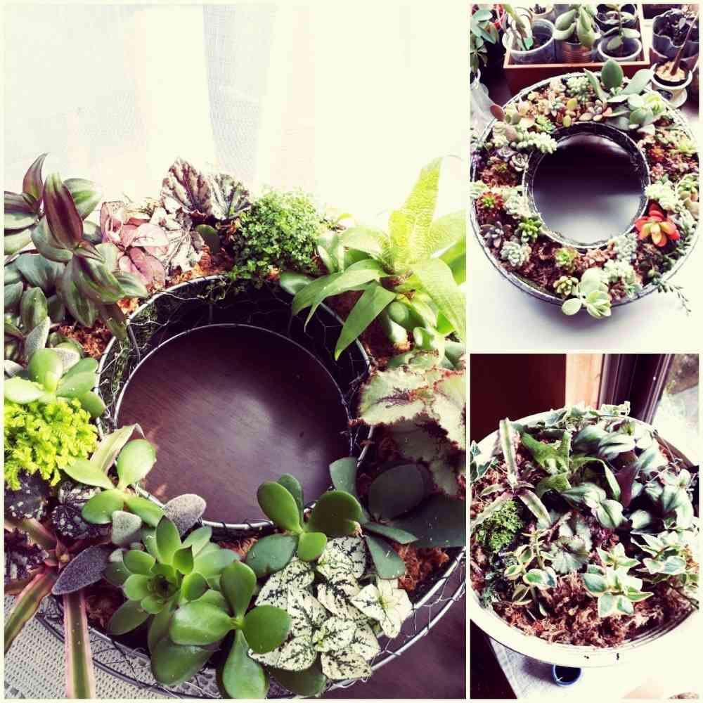 最初はリースに観葉植物を植えたのですが、どんどん元気がなくなり…鉢に移してたっぷりお水をあげたらなんとかなりました😅